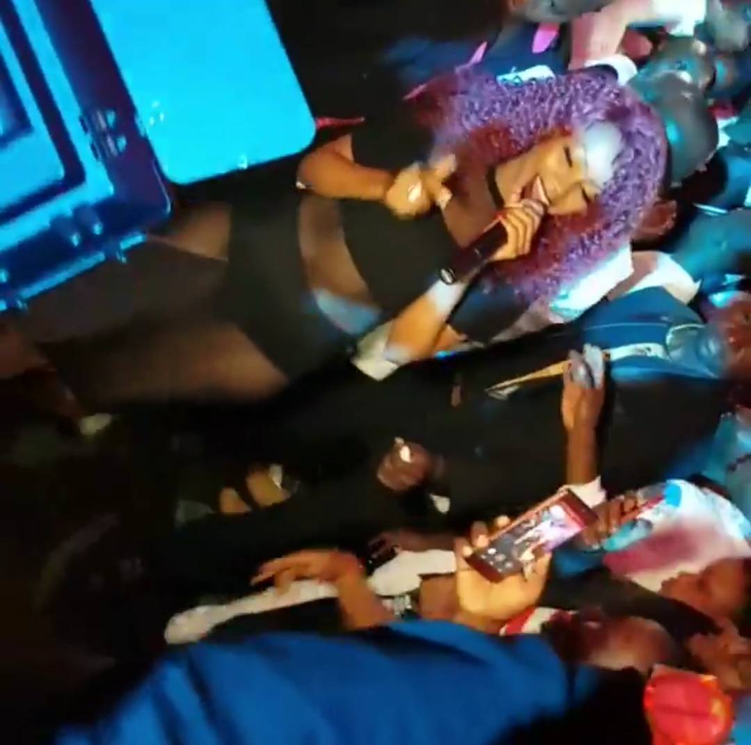 During her lovely performance, she was guarded by big bouncers on all her sides which made the efforts of many hungry single men to touch her, difficult. Sheebah is also very cunning in that she came with a see through cloth which had a sort of bikini under and this was seen as a ploy to torment the singles lads.